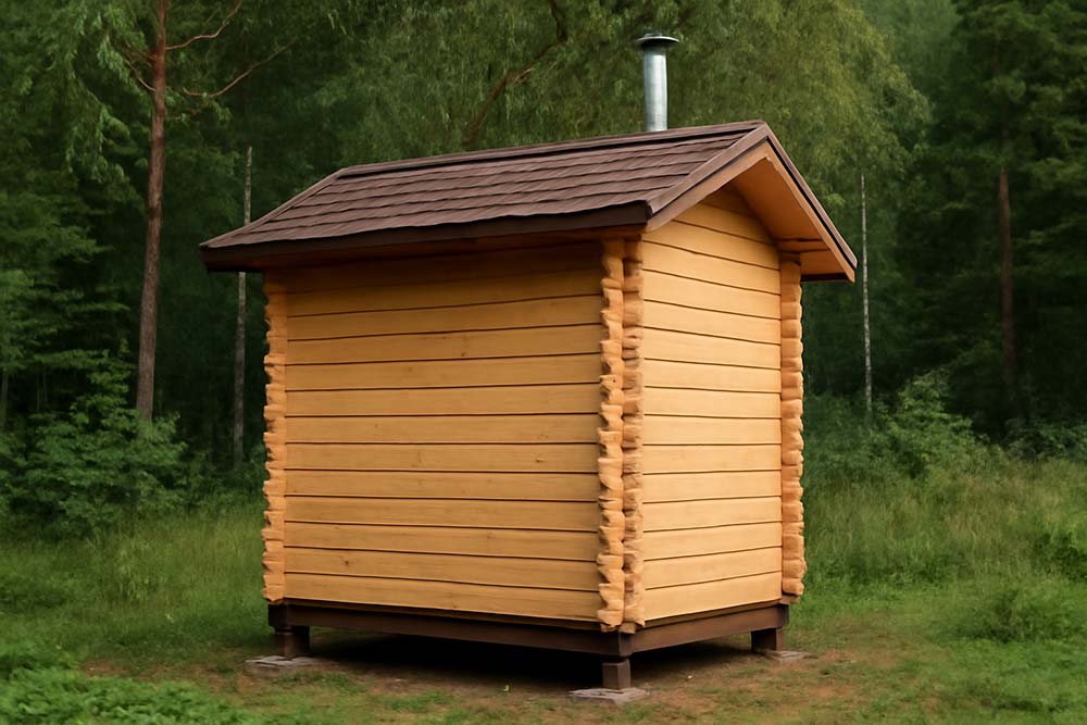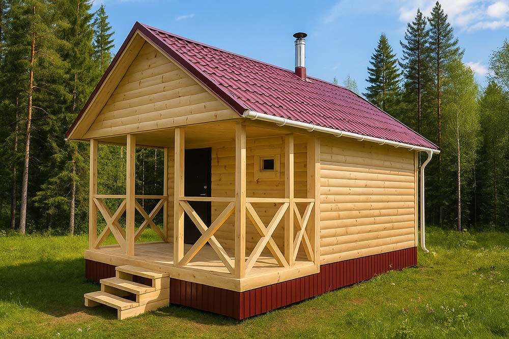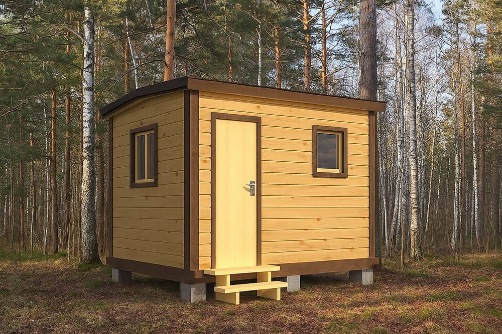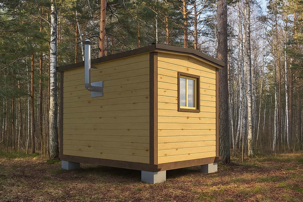 Не нужно заливать бетон! Мы устанавливаем баню на блоки или винтовые сваи — подбираем сами в зависимости от участка.